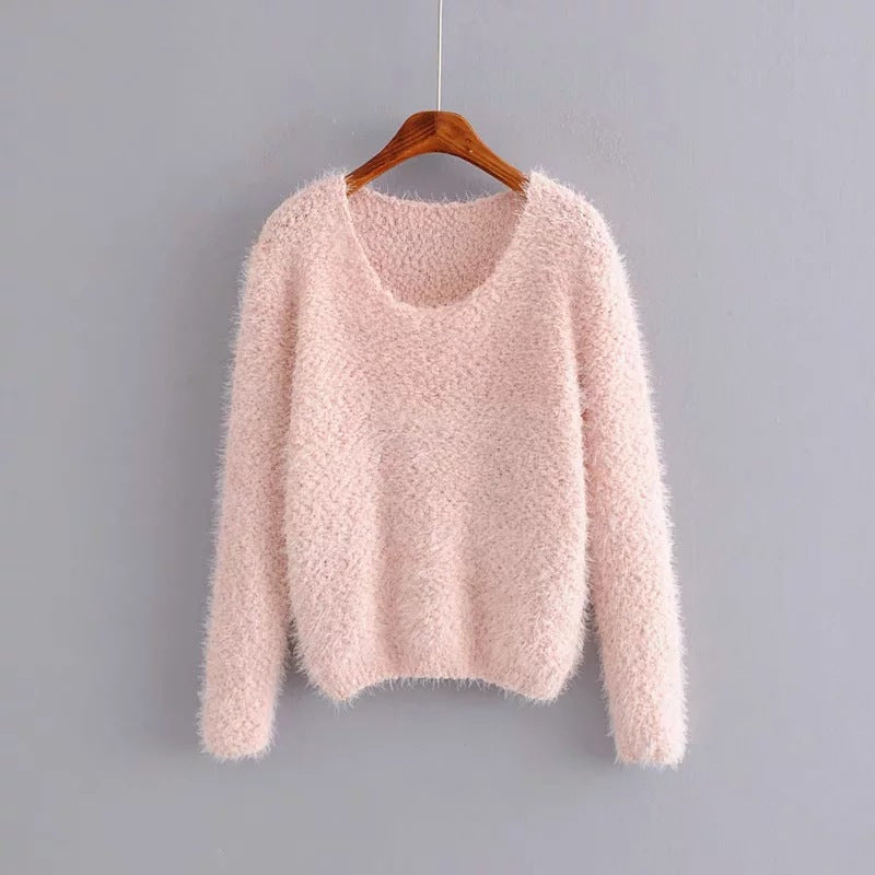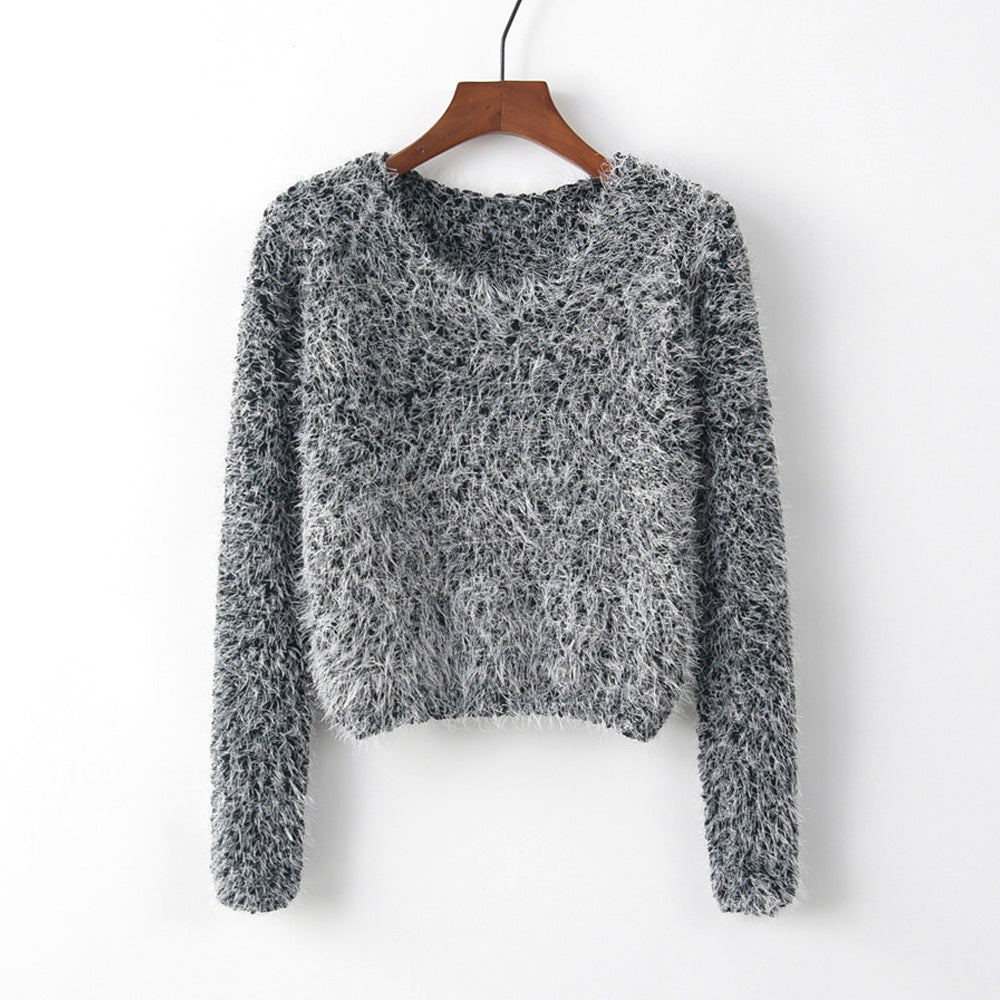 Solid Color Round Neck Pullover Short Pineapple Pin Sweater